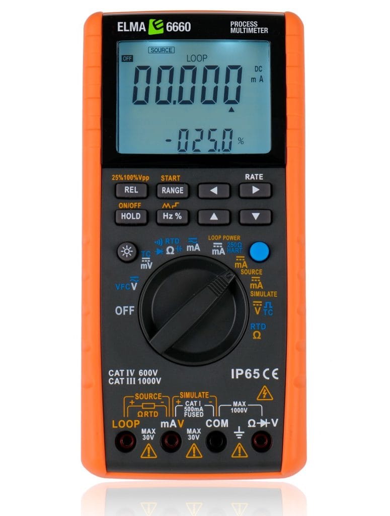 Elma 6660 er et avanceret procesmultimeter udviklet til industrielektrikere og teknikere, der arbejder med styrings- og reguleringsopgaver. Instrumentet kombinerer klassiske multimeterfunktioner med proceskalibratorens muligheder for at simulere og generere signaler – og kan anvendes i både aktive og passive kredse.