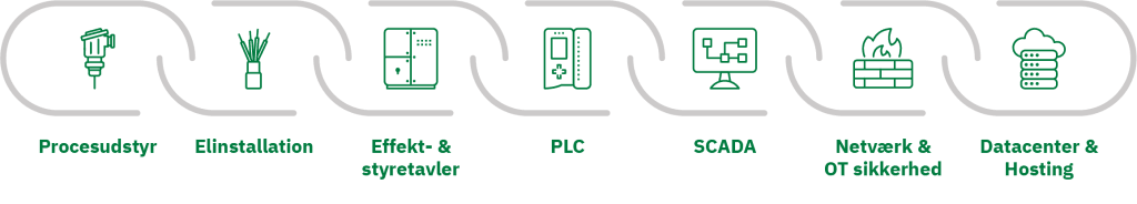 Vi er blandt de få i landet, der tilbyder løsninger, der spænder over hele automationskæden – fra procesudstyr og elinstallation til effekt- og styretavler, PLC, SCADA, netværk, OT-sikkerhed og hosting. Med os som din samarbejdspartner får du en samlet automationsløsning, og vi tager hånd om både projektledelse og koordination. Vi tager ansvaret fra start til slut, så du kan fokusere på det, der er vigtigt for dig.