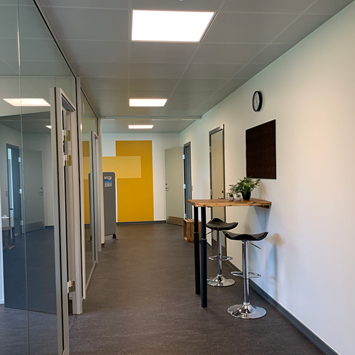 I kontorfællesskabet blev eksisterende lyskilder udskiftet med henholdsvis LED paneler samt LED downlights med sensor. Med denne udskiftning har de opnået et markank bedre arbejdslys samt et lavere elforbrug.
