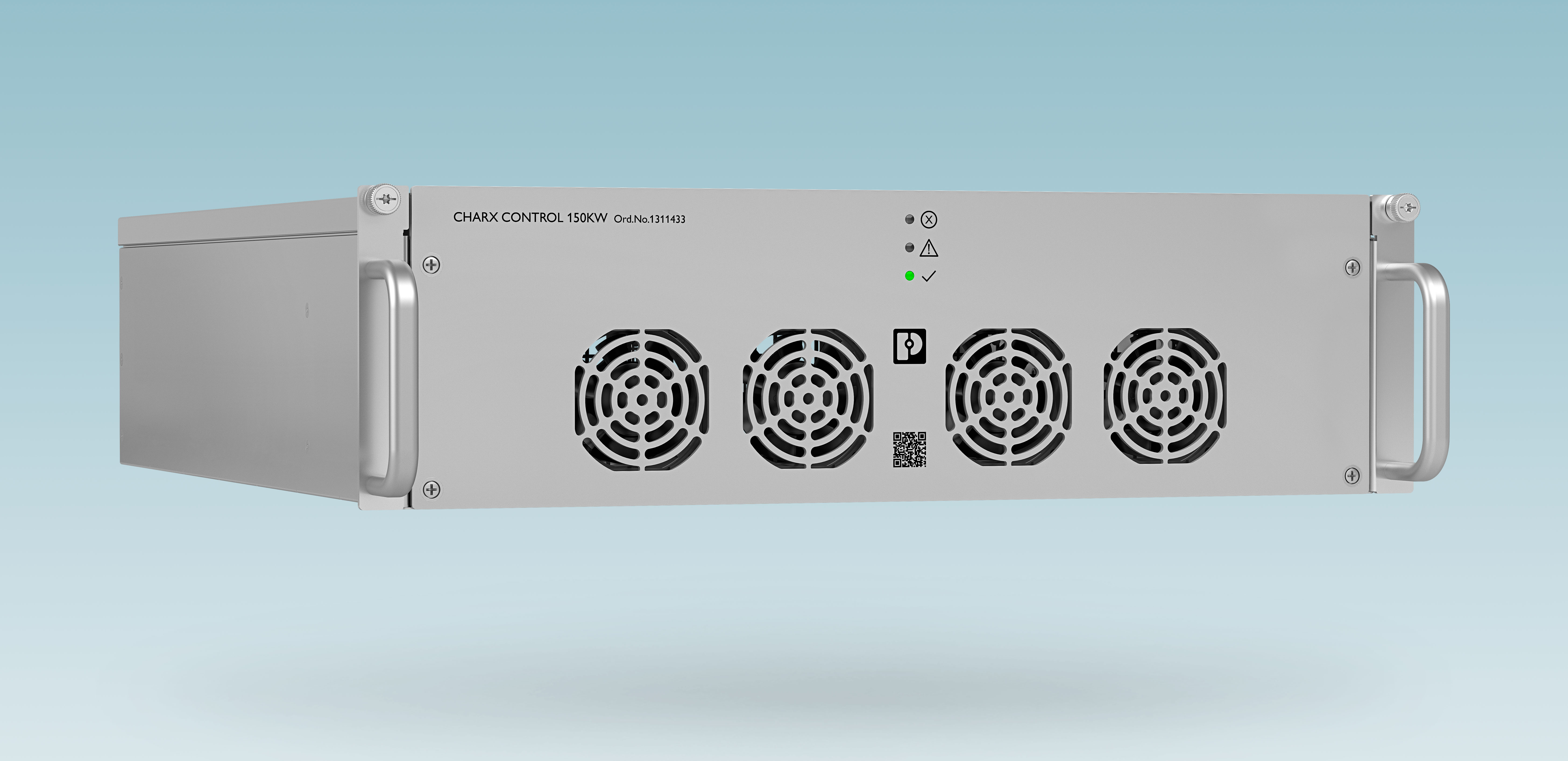 Charx control, der er integreret i DC ladecontrolleren fra Phoenix Contact, kombinerer alle funktioner til kontrol og overvågning af 19” ladestationer i én enhed.