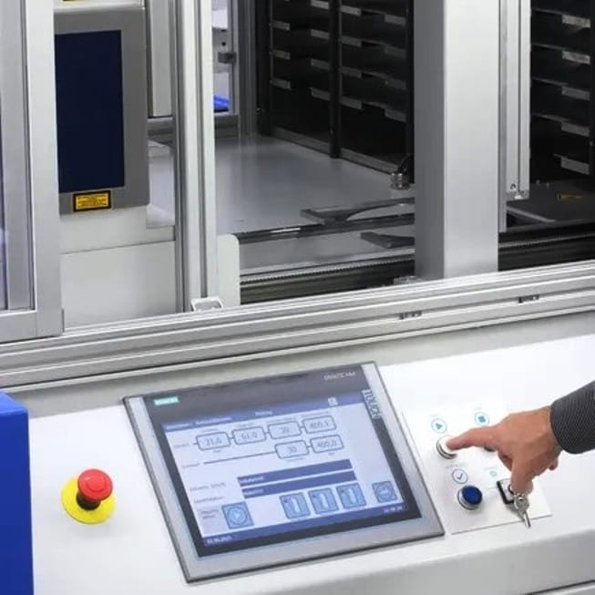 Med den intuitive touchscreen får operatøren fuld kontrol over alle parametre, og en integreret laserenhed markerer automatisk prøveemner i overensstemmelse med gældende standarder, fx bølgeprøve i henhold til PV1054.