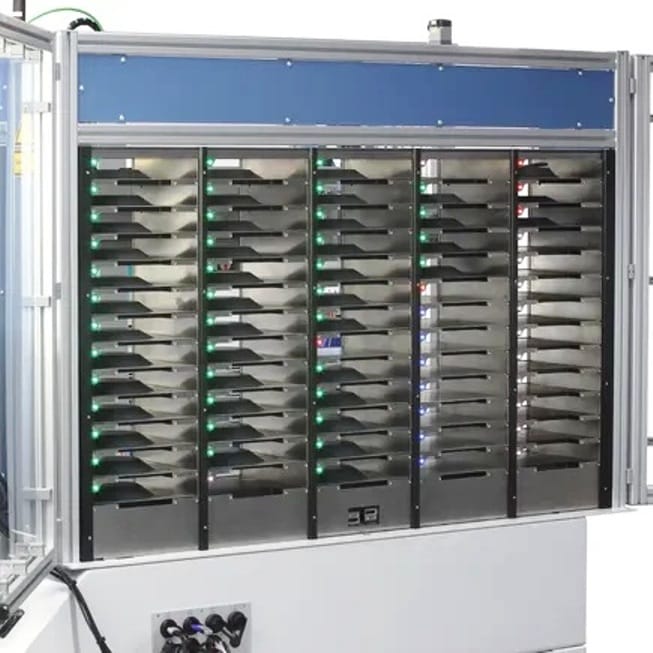 Systemet er konstrueret til kontinuerlig industriel drift og er udstyret med en prøveholder med plads til 52 prøver hvilket markant reducerer testtiden og øger både kapacitet og processtabilitet.