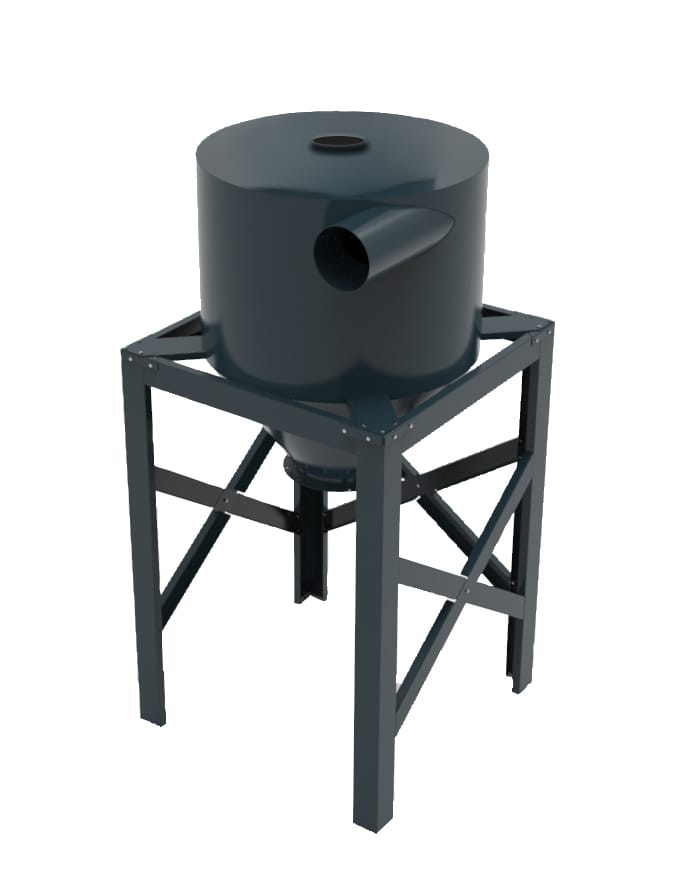 HVU forudskiller ø1400 separerer det grove materiale tidligt i processen. Den cykloniske effekt sikrer, at tunge partikler effektivt udskilles og opsamles, før de når filtercyklonen.