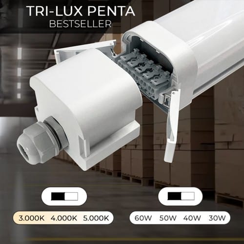 TRI-LUX er den populære green:ID serie af gennemfortrådet LED-armaturer, der kombinerer høj kvalitet, fleksibilitet og enkel installation. Serien er udviklet til krævende belysningsopgaver og er ideel til både industri, lagerfaciliteter, parkeringskældre og andre professionelle miljøer, hvor ydeevne og holdbarhed er afgørende.