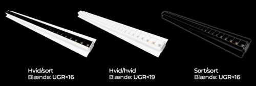 Sortimentet omfatter også en ny UGR-version med lav blænde, der sikrer et behageligt og kontrolleret lys i professionelle miljøer.